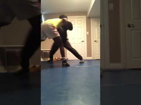 Ankle Pick: My last technique is my ankle pick. Just like my head inside low ankle I start from neutral and lead with my left arm. This time I put my right hand on his head and get into a collar tie. Then I step towards the arm that has his head as I pull his other arm towards me, this causes him to step heavy on the leg that is coming towards me. When his leg lands I reach down to his ankle with the arm that was on his shoulder, with my forearm on his neck I fold him over the ankle that I picked. This causes him to go straight to his back.