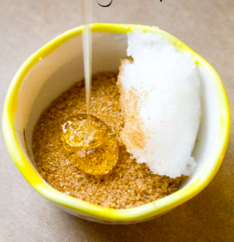 i. In a small bowl, put in the sugar, the coconut oil, and the honey.